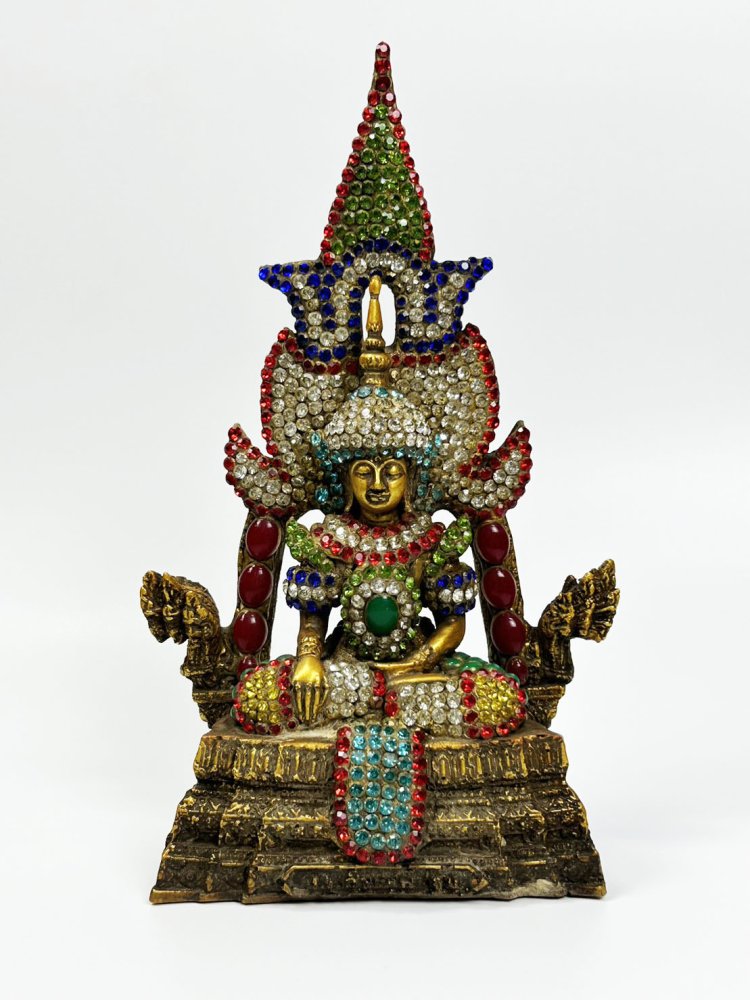 สมเด็จองค์ปฐม งานหนังสัตว์ประดับพลอย ขนาดหน้าตัก 5 นิ้ว ขนาด ความกว้าง 21 เซนติเมตร x ความหนา 11 เซนติเมตร x ความสูง 32 เซนติเมตร
