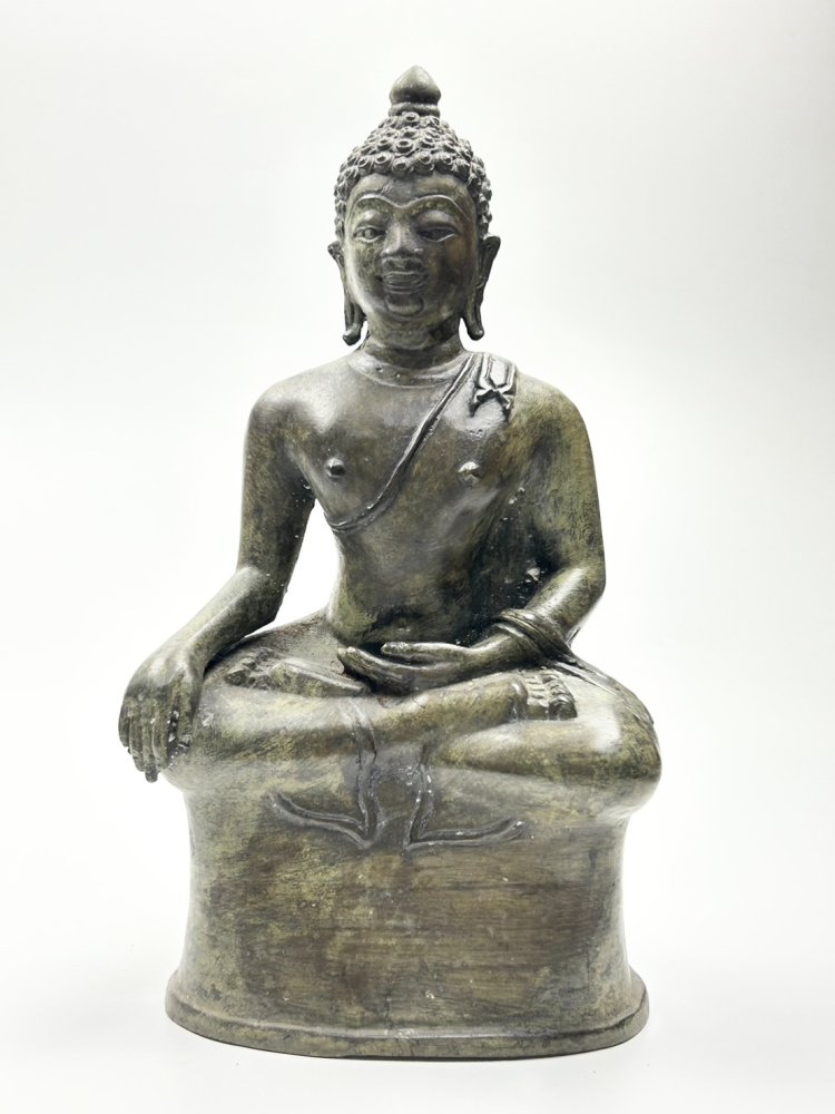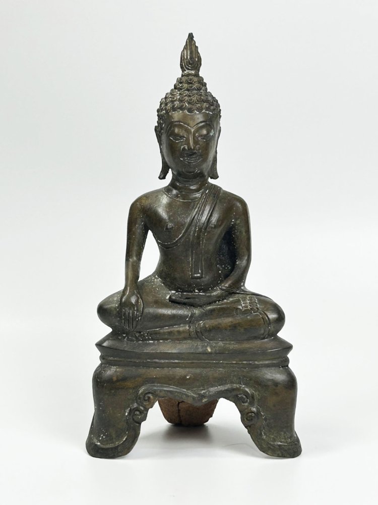 พระพุทธรูปเชียงแสน เนื้อสำริด ขนาดหน้าตัก 5 นิ้ว ขนาดความกว้าง 14 เซนติเมตร x ความหนา 8 เซนติเมตร x ความสูง 25.50 เซนติเมตร