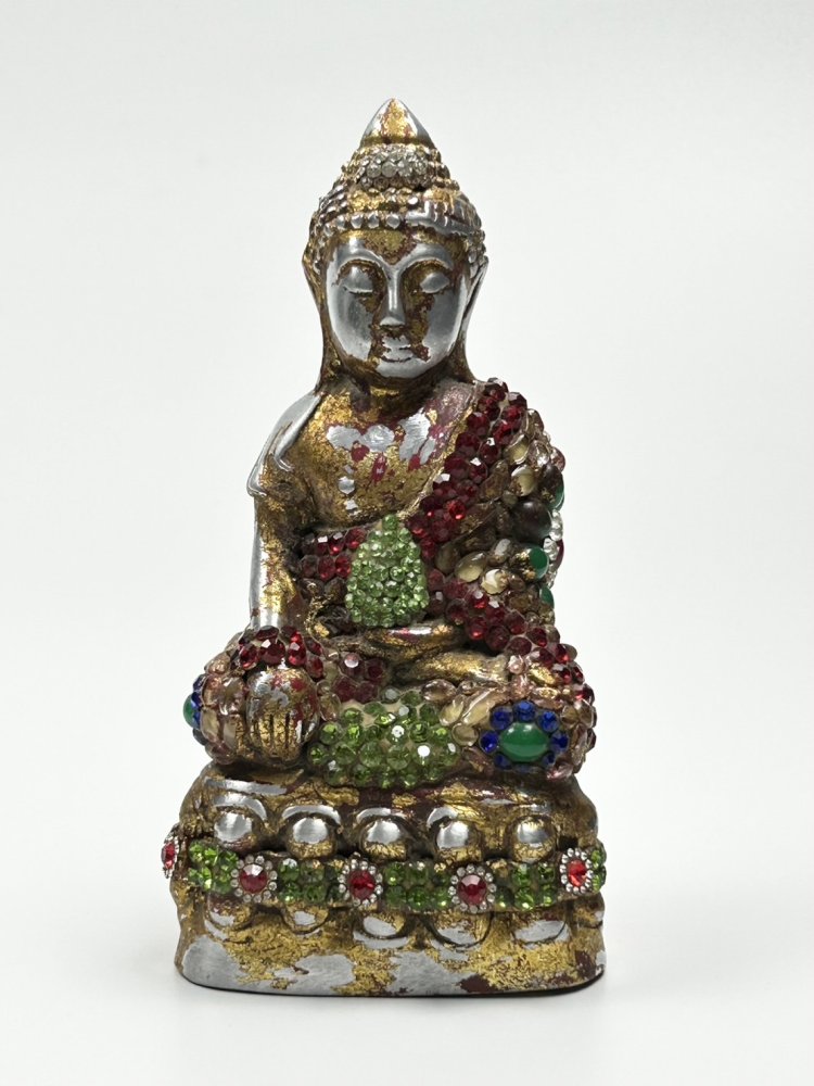 พระกริ่งปวเรศ เนื้อเงินประดับพลอย ขนาดความกว้าง 8.50 เซนติเมตร x ความหนา 6.50 เซนติเมตร x ความสูง 17 เซนติเมตร